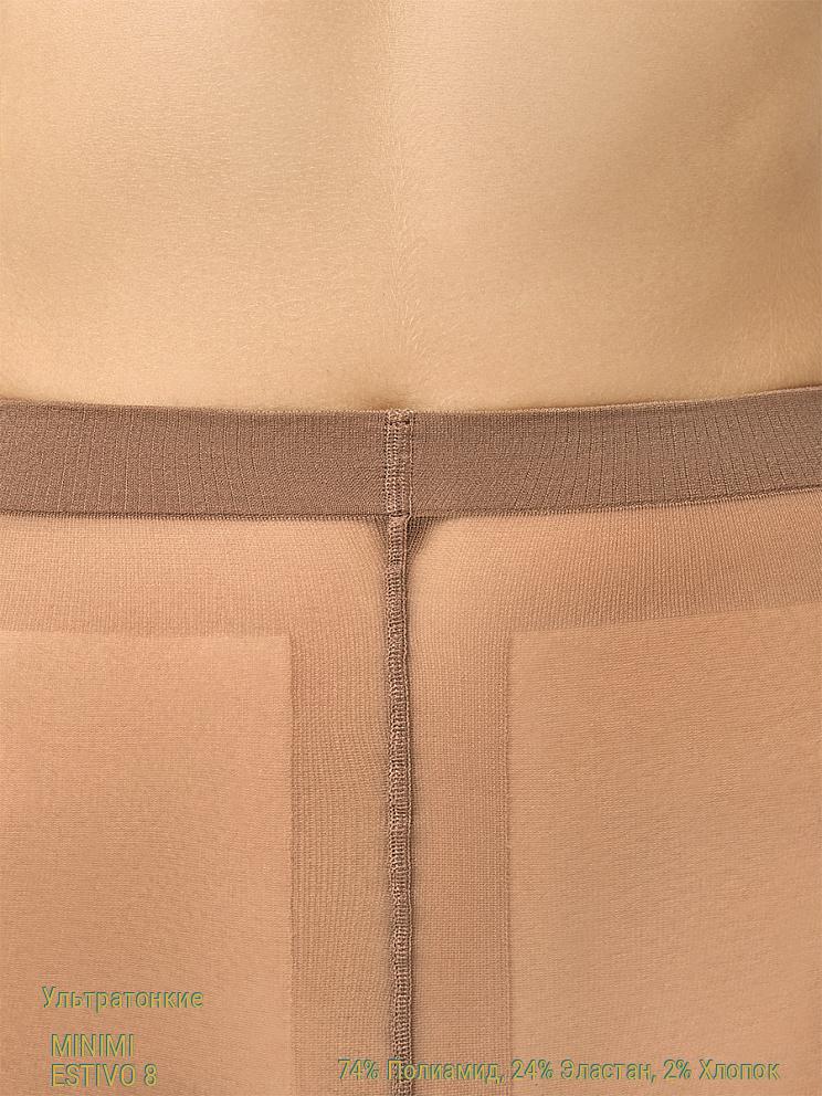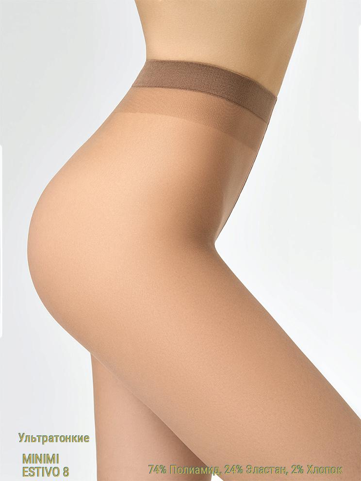 MINIMI ESTIVO 8 - эластичные ультратонкие (8 DEN) элегантные колготки. Абсолютно прозрачные, почти незаметные на ногах, с гладким шелковистым эффектом.Преимущества модели Миними Эстиво 8 Нудо: Колготки с классической посадкой (на талии). Однородные по всей длине (без шортиков). Ширина пояса-резинки - 3.5 см. С гигиенической ластовицей из хлопка. С комфортным плоским соединительным швом. Формованные (с выраженной пяткой). С прозрачным мыском. технологии и особенности: NUDE EFFECT - эффект обнаженности (ультратонкие и очень прозрачные). TUTTO NUDO - полностью однородные (по плотности и прозрачности) по всей длине колготки. SINGLE COVERED - использование пряжи с эластаном обкрученным полиамидом, используется для создания лучших изделий. Рзмеры: 2 (S), 3 (M), 4 (L) Цвета: Abbronzante (Коричневый), Caramello (Бежевый), Daino (Бежевый), Nero (Черный) Состав: 74% Полиамид 24% Эластан 2% Хлопок Производитель: MINIMI® (Россия). ZHEJIANG PINCAI KNITTING CO., LTD. Произведено в Китае.
