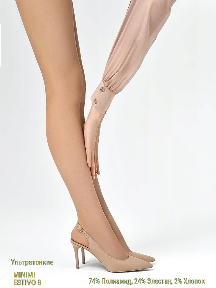 MINIMI ESTIVO 8 - эластичные ультратонкие (8 DEN) элегантные колготки. Абсолютно прозрачные, почти незаметные на ногах, с гладким шелковистым эффектом.Преимущества модели Миними Эстиво 8 Нудо: Колготки с классической посадкой (на талии). Однородные по всей длине (без шортиков). Ширина пояса-резинки - 3.5 см. С гигиенической ластовицей из хлопка. С комфортным плоским соединительным швом. Формованные (с выраженной пяткой). С прозрачным мыском. технологии и особенности: NUDE EFFECT - эффект обнаженности (ультратонкие и очень прозрачные). TUTTO NUDO - полностью однородные (по плотности и прозрачности) по всей длине колготки. SINGLE COVERED - использование пряжи с эластаном обкрученным полиамидом, используется для создания лучших изделий. Рзмеры: 2 (S), 3 (M), 4 (L) Цвета: Abbronzante (Коричневый), Caramello (Бежевый), Daino (Бежевый), Nero (Черный) Состав: 74% Полиамид 24% Эластан 2% Хлопок Производитель: MINIMI® (Россия). ZHEJIANG PINCAI KNITTING CO., LTD. Произведено в Китае.