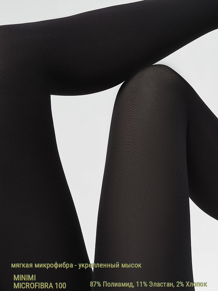 MINIMI MICROFIBRA 100 - эластичные очень плотные (100 DEN) колготки, серии INVERNO. Изготовленные из микроволокна (микрофибра). Для сезона ношения осень - зима. Непрозрачные, с мягким бархатистым эффектом.конструкция: Колготки с классической посадкой (на талии). Однородные по всей длине. Ширина пояса-резинки - 4.0 см. С гигиенической ластовицей из хлопка. С комфортным плоским соединительным швом. Не формованные. Произведено в Китае.> Состав: 87% Полиамид 11% Эластан 2% Хлопок технологии и особенности: MICROFIBRA - пряжа состоящая из множества ультратонких полиамидных волокон, создает матовый (без блеска) эффект, придает изделию мягкость и бархатистость, улучшает практичность изделия. бренд / компания / страна производства: MINIMI® (Россия). ZHEJIANG PINCAI KNITTING CO., LTD.