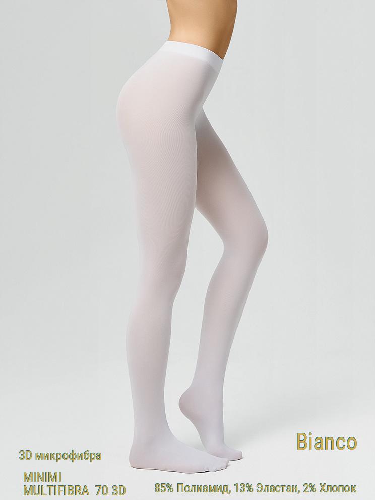 MINIMI MULTIFIBRA 70 - эластичные плотные (70 DEN) колготки, серии INVERNO. Изготовленные из микроволокна (микрофибра). С равномерной ровной вязкой, благодаря 3D технологии. Для сезона ношения осень - зима. Почти непрозрачные, с мягким бархатистым эффектом. Колготки из микрофибра предоставляют улучшенный комфорт ношения (благодаря большей мягкости исходного сырья). Обеспечивают большую практичность (менее подвержены "зацепкам" и более стойкие к образованию стрелок).конструкция: Колготки с классической посадкой (на талии). Однородные по всей длине. Ширина пояса-резинки - 3.0 см. С гигиенической ластовицей из хлопка. С комфортным плоским соединительным швом. Не формованные. Состав: 85% Полиамид 13% Эластан 2% Хлопок Цвета: Avorio (Молочный), Bianco (Белый), Caramello (Бежевый), Daino (Бежевый), Fumo (Серый), Moka (Коричневый), Nero (Черный) технологии и особенности: MICROFIBRA - пряжа состоящая из множества ультратонких полиамидных волокон, создает матовый (без блеска) эффект, придает изделию мягкость и бархатистость, улучшает практичность изделия. 3D - технология, при которой эластан провязывается в каждом петельном ряду, создает ровную однородную поверхность (лучший внешний вид) и большую эластичность. бренд / компания / страна производства: MINIMI® (Россия). ZHEJIANG PINCAI KNITTING CO., LTD. Произведено в Китае.