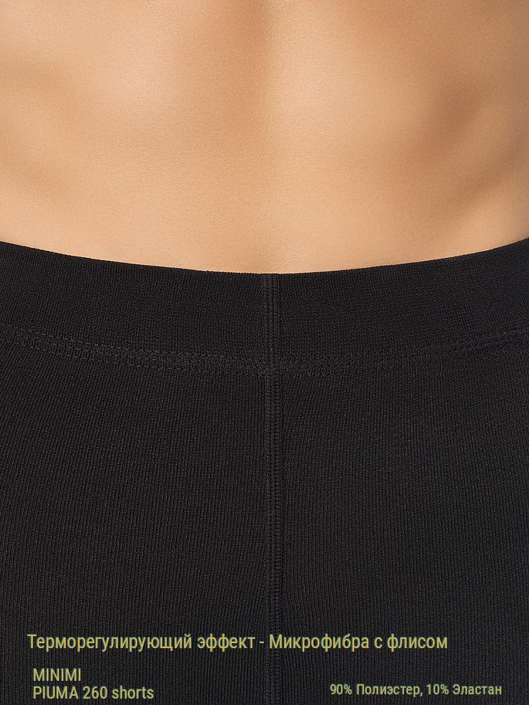 MINIMI SHORTS PIUMA 260 - супер плотные (260 DEN) и теплые шорты с термо эффектом, серии INVERNO. Изготовленные из микроволокна (полиэстер). Гладкие с наружной стороны и с мягким ворсом (микрофлис) с изнаночной стороны. Для сезона ношения осень - зима. Непрозрачные, с мягким бархатистым эффектом. Мягкий микроворс, приятно ощущается на коже, обеспечивает комфортный внутренний микроклимат и терморегулирующий эффект.Состав: 90% Полиэстер 10% Эластан Цвета: Caramello (Бежевый), Nero (Черный) конструкция: Шорты с классической посадкой (на талии). Однородные по всей длине. Ширина пояса-резинки - 4.0 см. С гигиенической ластовицей из хлопка. С комфортным плоским соединительным швом. технологии и особенности: MICRO FLEECE - использование микрофлиса. THERMO EFFECT - помогает согревать и сохранять тепло. бренд / компания / страна производства: MINIMI® (Россия). HANGZHOU JIUCHANG IMP. & EXP. CO., LTD. Произведено в Китае.